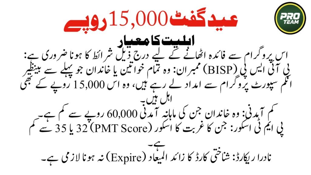 Meeting these basic requirements increases your chance of receiving the 15000 Eid UL Fitr support. Eligibility checks are automated using national databases.