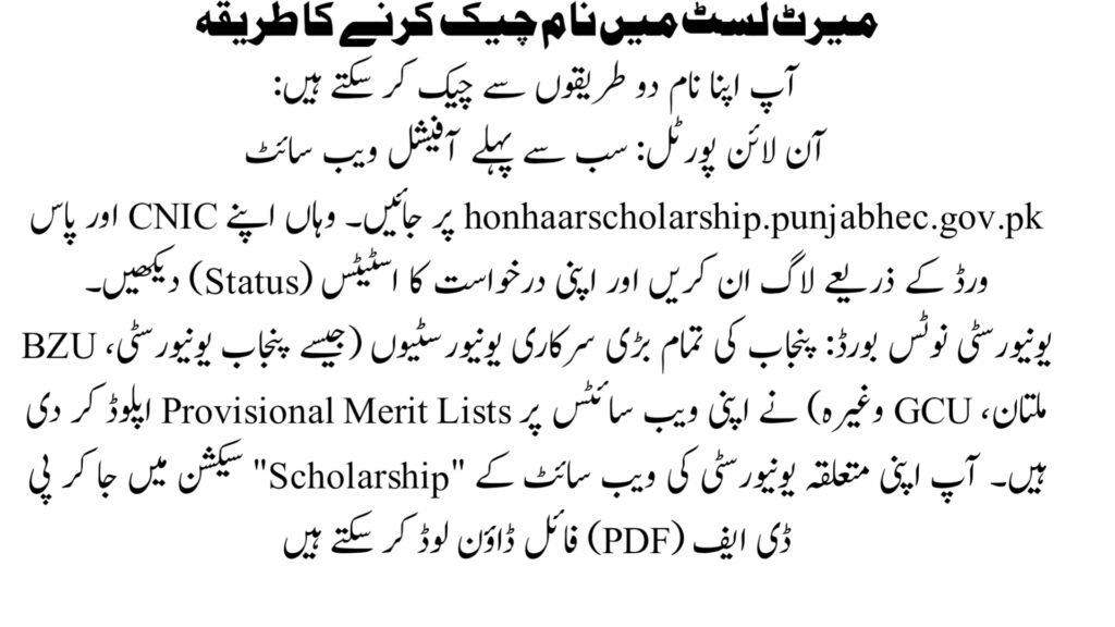 The Punjab Higher Education Commission reviews applications, verifies documents, and then publishes the final merit list online. Students are encouraged to keep checking the portal regularly.